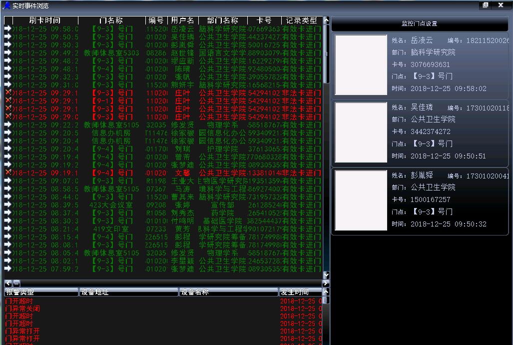 針對校方提出的關于實驗室門管控及各樓宇出入口門管控需求,經過多方洽談,根據校方的實際需要,實現了以下多項功能:
