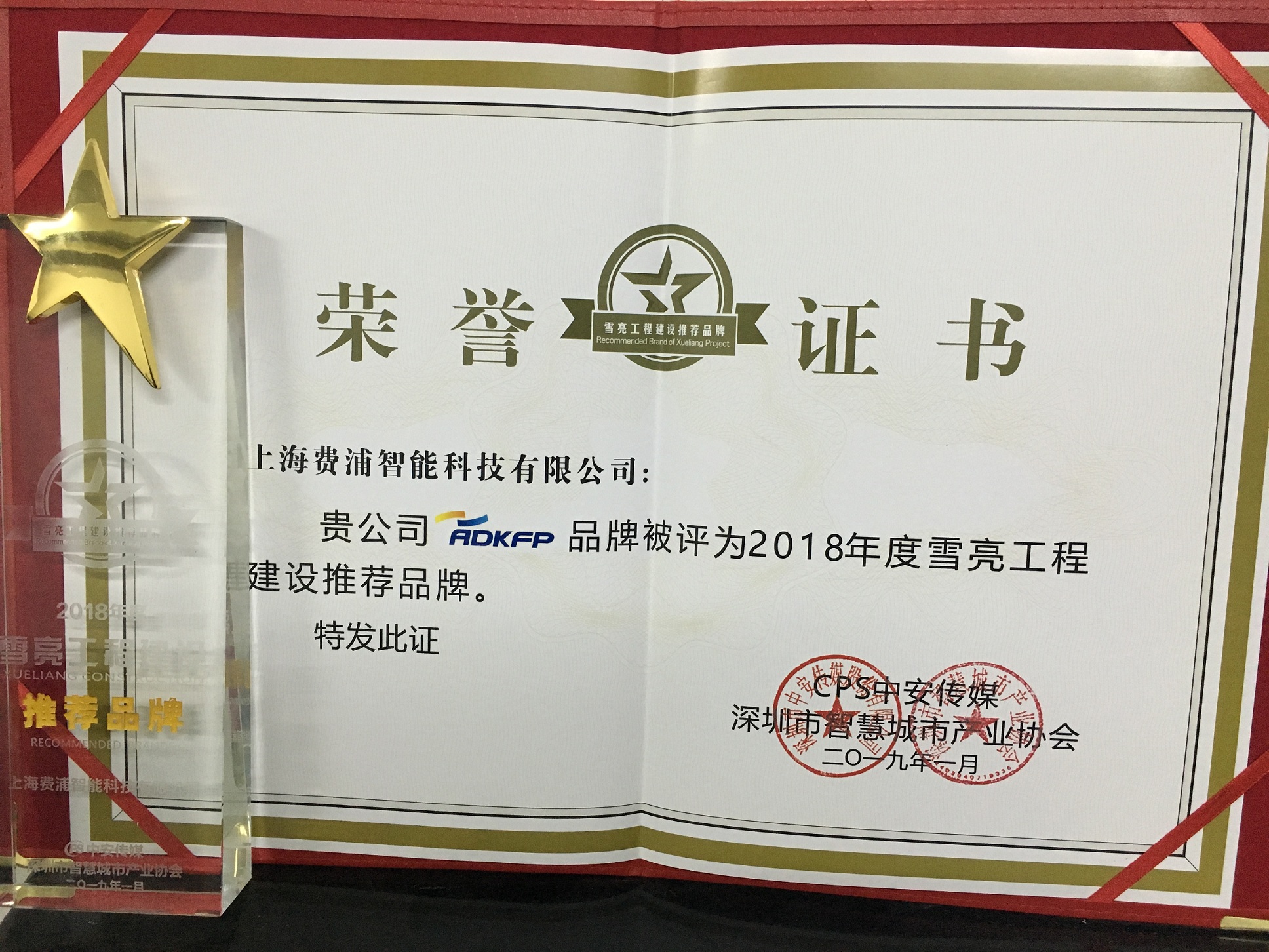 熱烈祝賀費(fèi)浦智能“ADKFP”品牌榮獲2018年雪亮工程建設(shè)推薦品牌