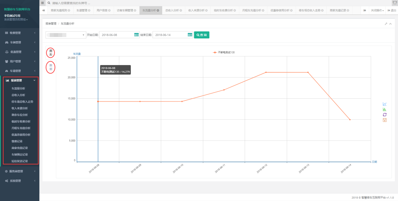 8、系統(tǒng)可提供各類車輛出入場報表、收費報表的查詢,提升停車場的信息化功能,有效統(tǒng)計停車場車流、使用率等信息,便于車場管理單位了解停車場的使用狀況。